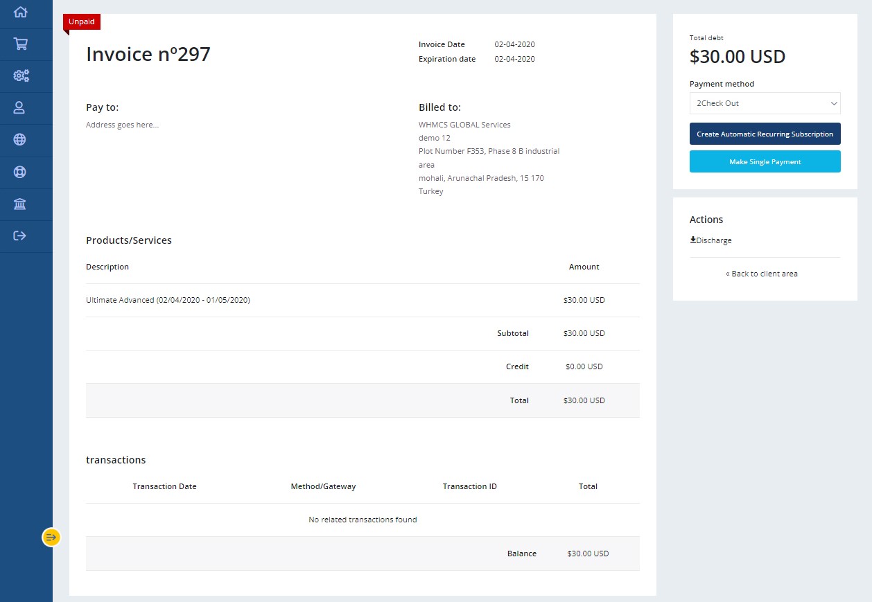 Click the Client Area link in the You are Here list. This is the end of this tutorial. You now know how to pay an invoice in WHMCS.